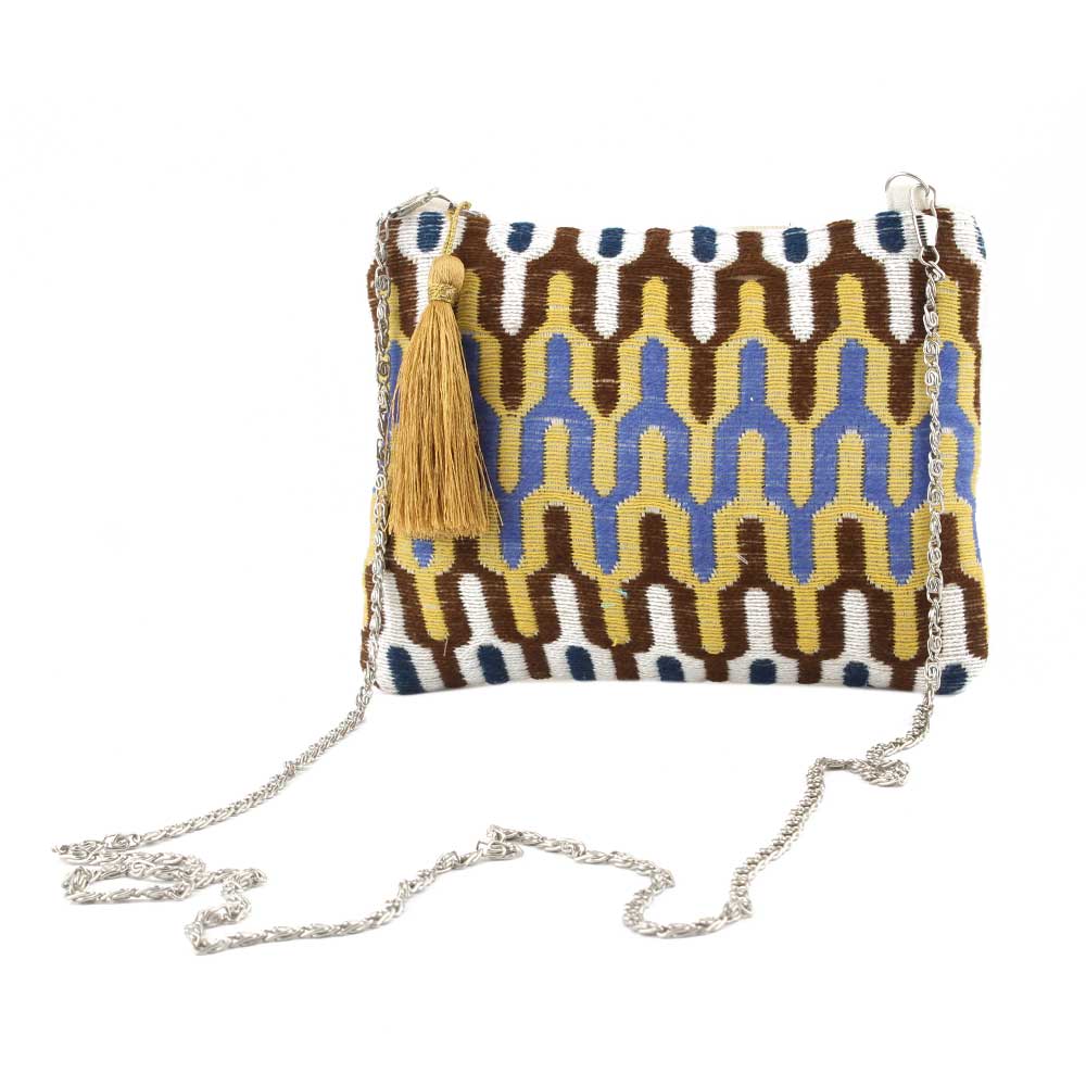 While it appears to be small, it is actually quite large. The bag is handcrafted in jacquard cotton with beautiful durrie work and includes a hidden pocket to keep your things safe. For a fast errand or a casual outing, grab this thin beauty.