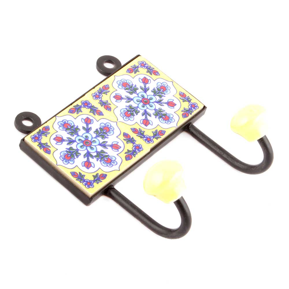 Yellow And Turquoise Tiny Flower Tiles Hooks Online. When Put on Wall or Cabinet it is an Art in itself. The Metal Part of this Hook is Black Powder Coated.