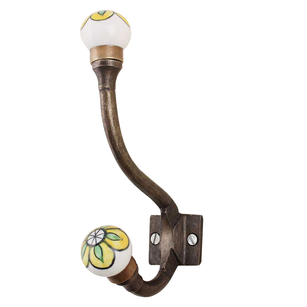 Yellow Black Green Iron Floral Hook-Ehg-69. When Put on Wall or Cabinet It Gives A Sturdy Look. This Hook is Strong Enough to Hold Your Cloths, Keys, Tea Cups, Coffee Mugs, Hand Towels Etc.