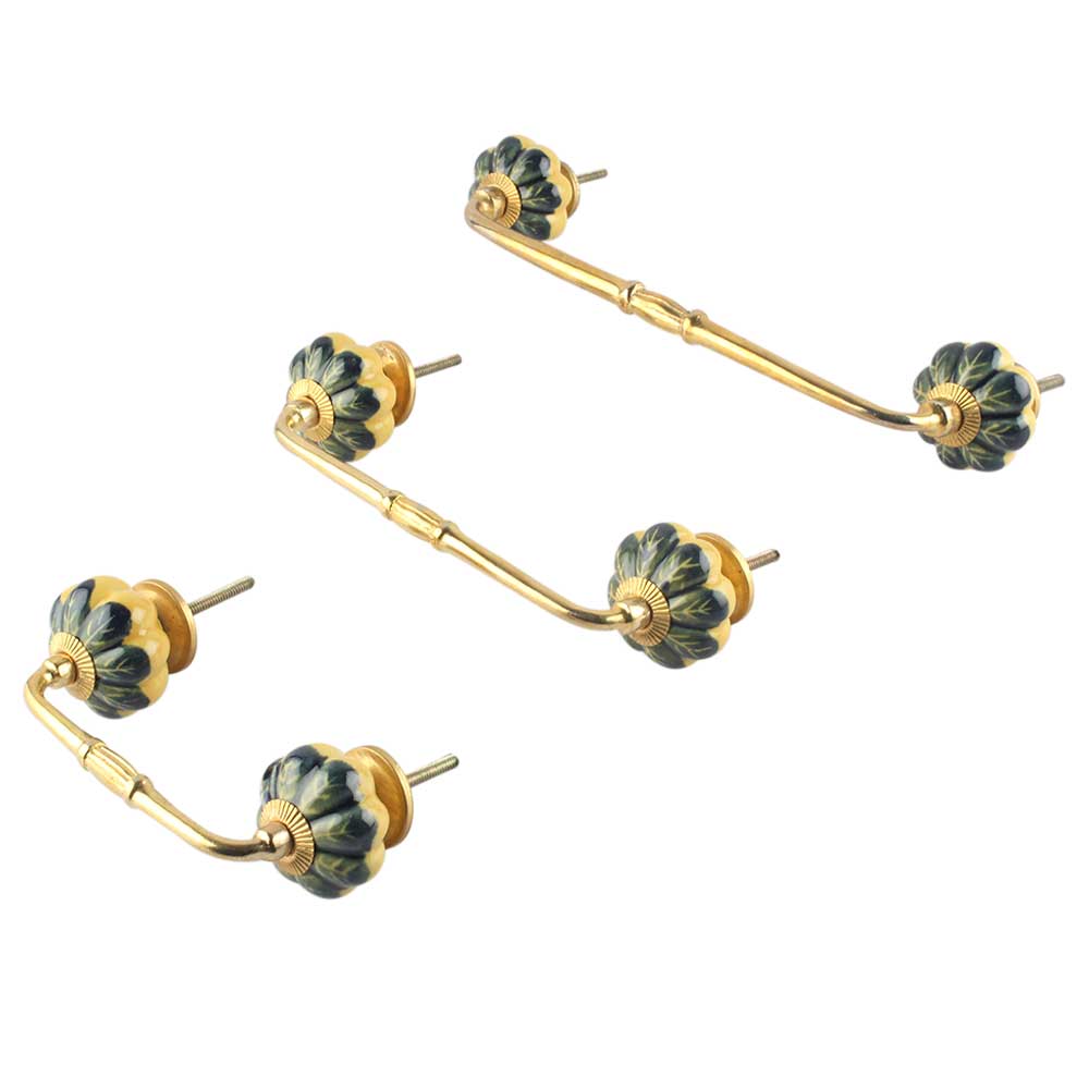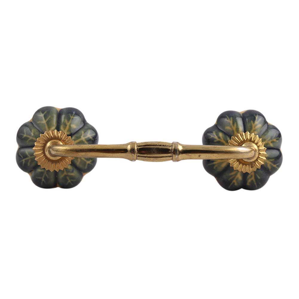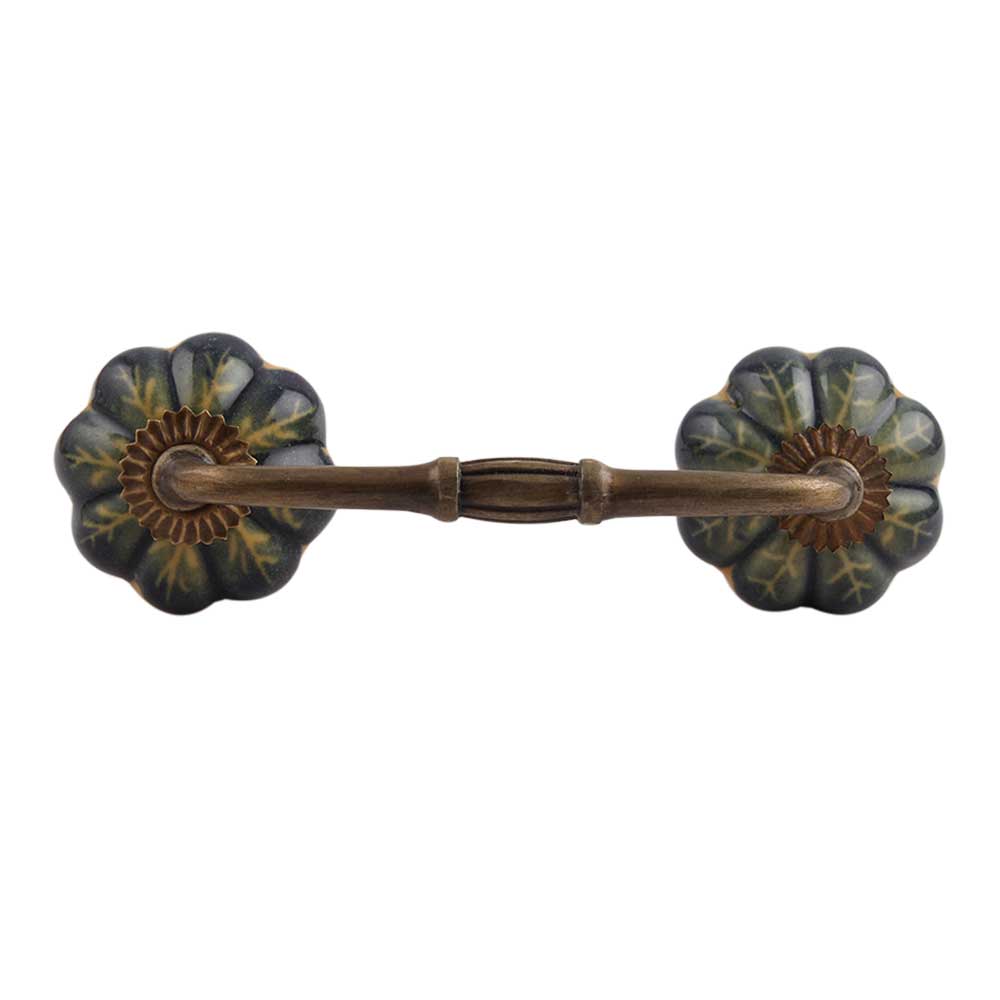 Yellow Blue Leaf Ceramic Bridge Handle. Ideal for Drawer, Dresser, Cabinet, Wardrobe, Cupboard and Almirah.