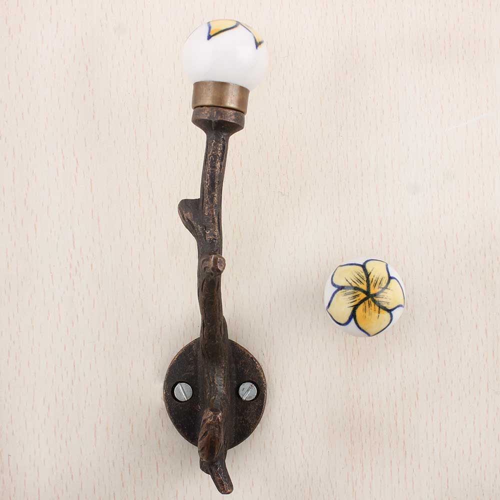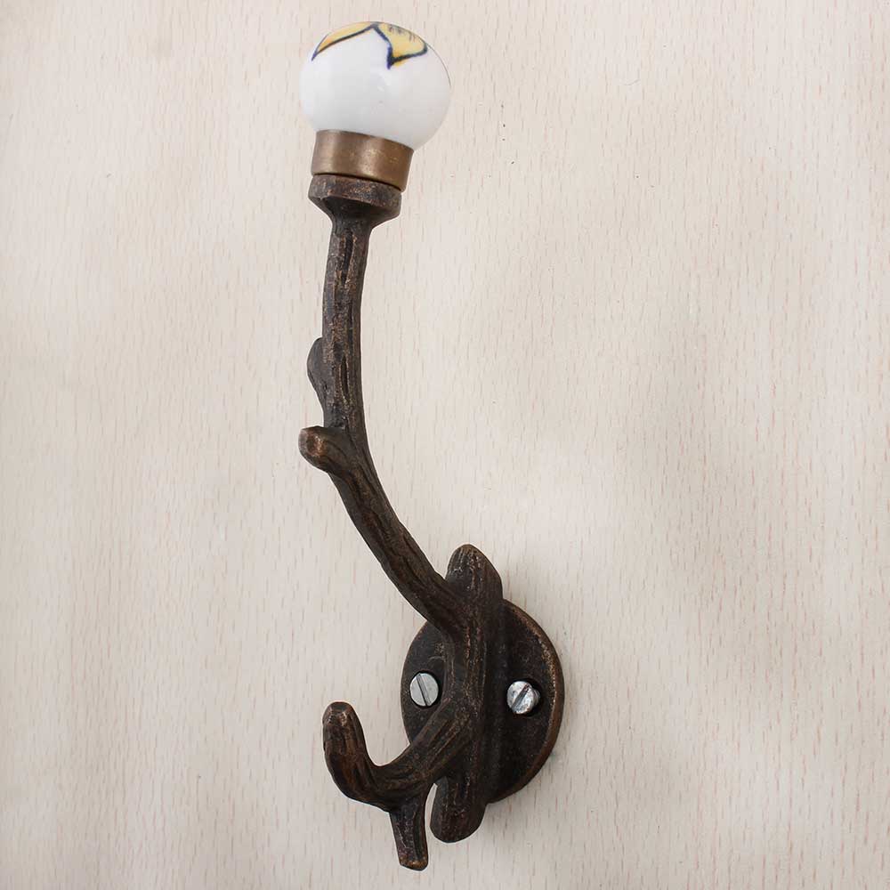Yellow Blue Leaf Tree Hook-Ehg-71. When Put on Wall or Cabinet It Gives A Sturdy Look. This Hook is Strong Enough to Hold Your Cloths, Keys, Tea Cups, Coffee Mugs, Hand Towels Etc.