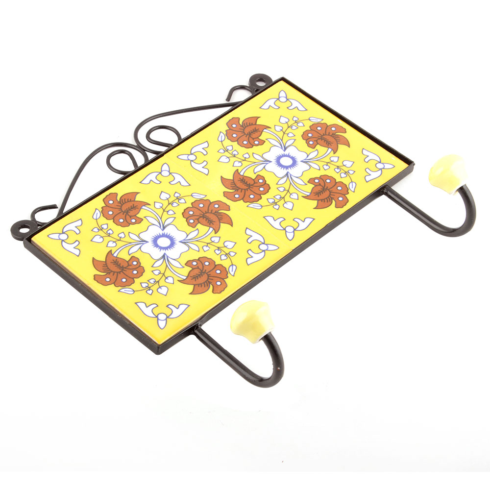 Yellow Brown Flower Tiles Hooks.When Put on Wall or Cabinet it is an Art in itself. The Metal Part of this Hook is Black Powder Coated.