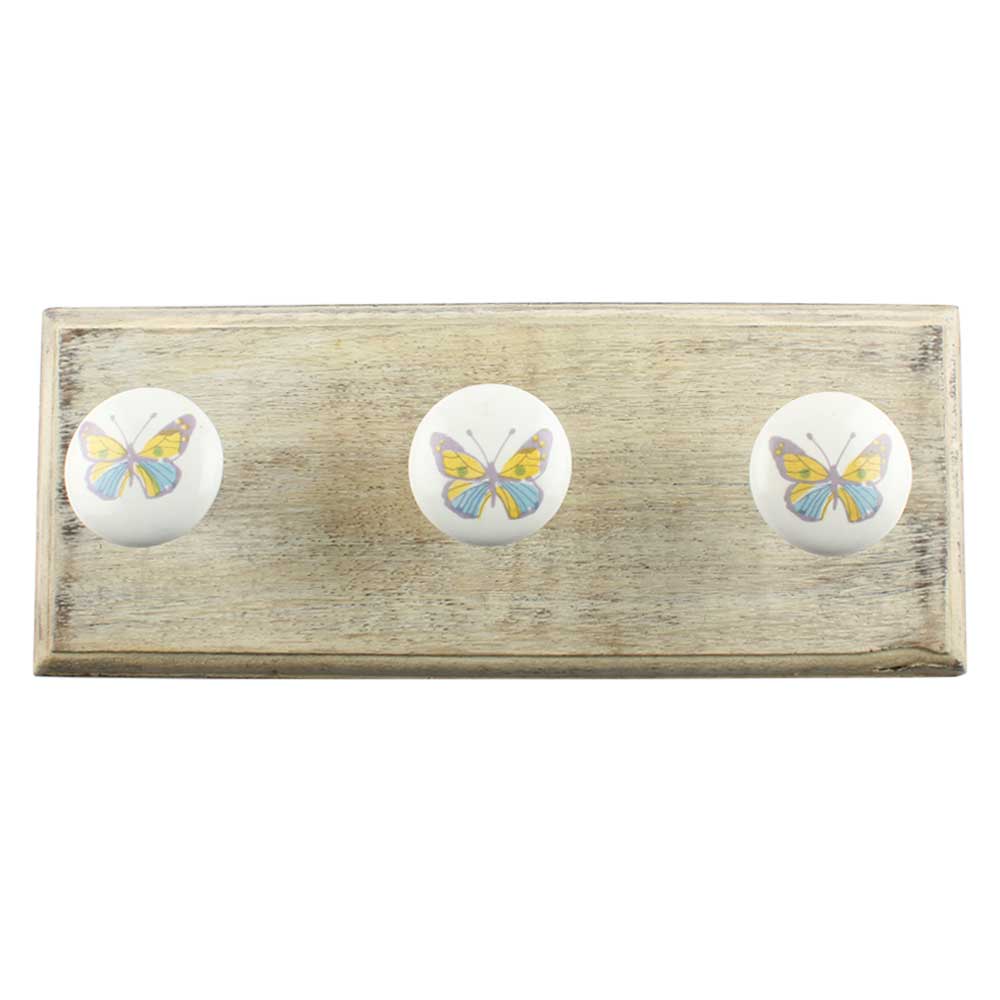 Add a pop of charm and color to your walls with the Yellow Butterfly Ceramic Wooden Hook. Handcrafted from solid Natural wood and topped with a detailed ceramic butterfly in a vibrant yellow glaze, this wall hook is equal parts practical and decorative. Each piece is carefully hand-painted, making it a unique work of functional art. Whether you use it in your entryway, kitchen, or nursery, this butterfly wall hook brings a cheerful, handcrafted touch to your space.