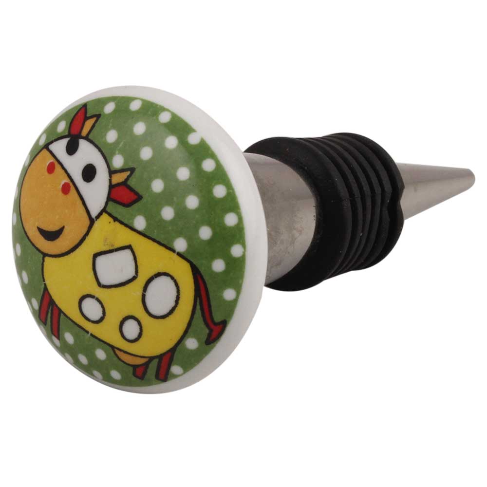 Yellow Cow Flat Ceramic Wine Stopper.zinc alloy wine bottle stopper with attractive Jute Bag Packaging.