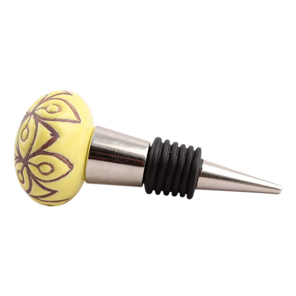 Yellow Etched Ceramic Wine Stopper.zinc alloy wine bottle stopper with attractive Jute Bag Packaging.