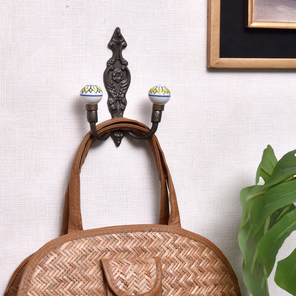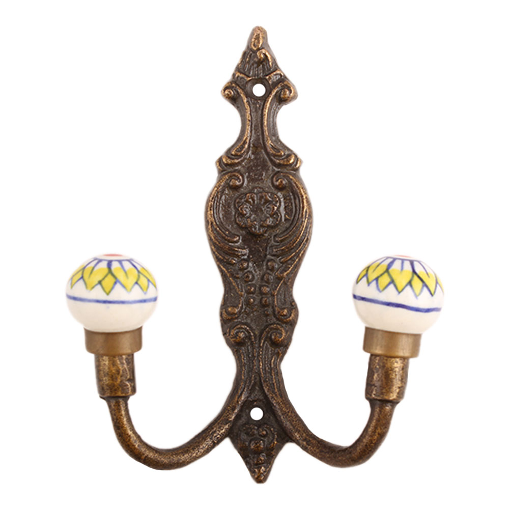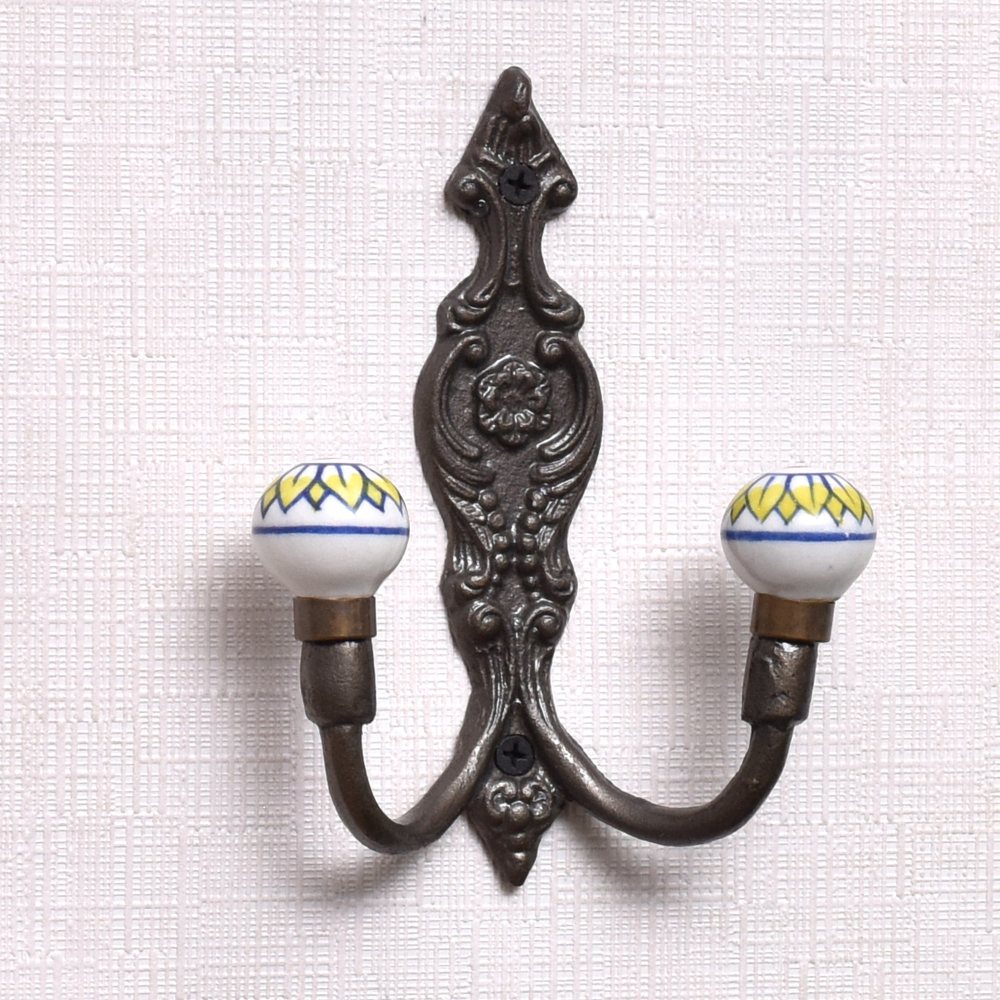 Yellow Floral Ceramic Iron Hook. When Put on Wall or Cabinet It Gives A Sturdy Look. This Hook is Strong Enough to Hold Your Cloths, Keys, Tea Cups, Coffee Mugs, Hand Towels Etc