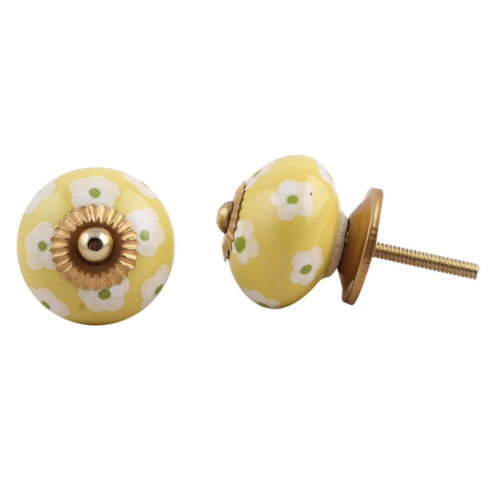 Yellow Floral Ceramic Knob, kitchen drawers, dining room, bed room, chest drawers, dressing tables, almirahs, etc.