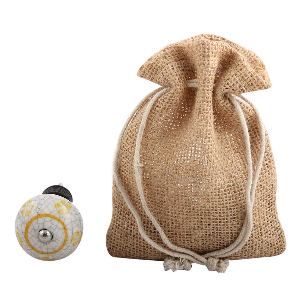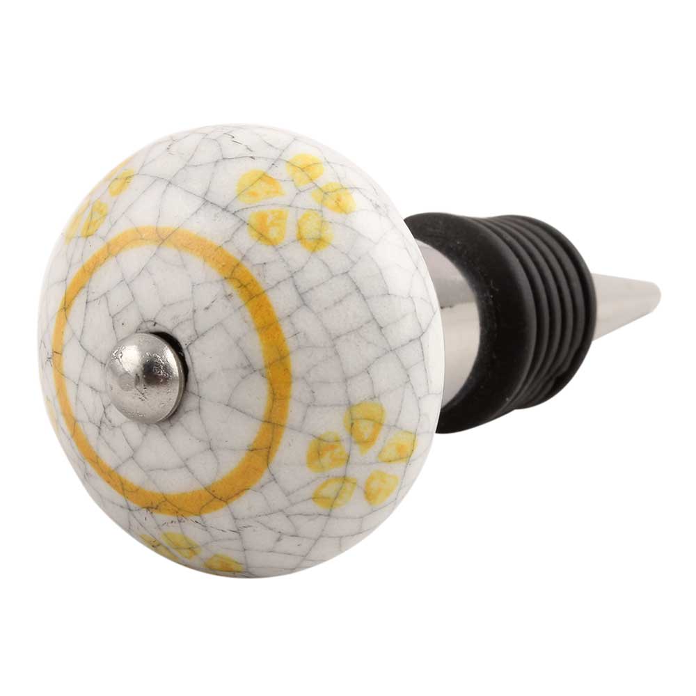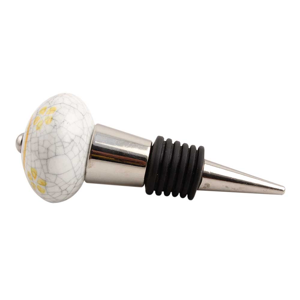 Yellow Floral Crackle Ceramic Wine Stopper. Zinc Alloy Wine Bottle Stopper with Attractive Jute Bag Packaging.