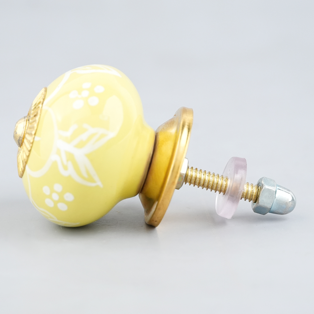 Yellow Flower Ceramic Dresser Knob, kitchen drawers, dining room, bed room, chest drawers, dressing tables, almirahs, etc.