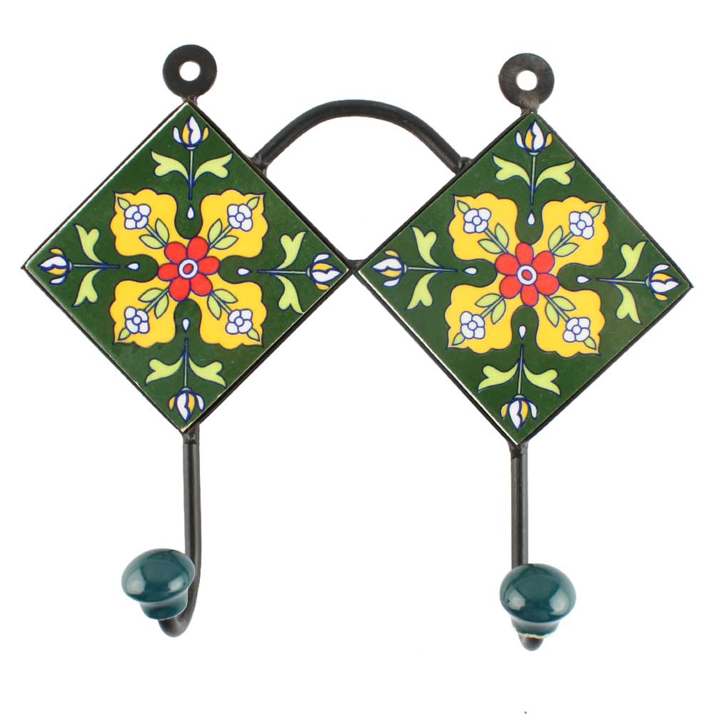 Yellow Flower Ceramic Tile Hook. When Put on Wall or Cabinet It is An Art in Itself. The Metal Part of this Hook is Black Powder Coated.