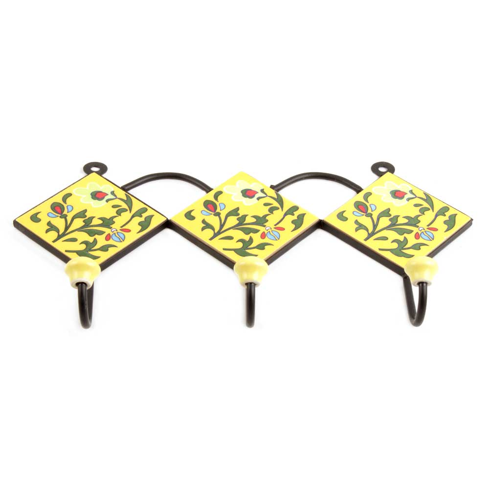 Yellow Forest Green Leaf Tiles Hook. When Put on Wall or Cabinet It is An Art in Itself. the Metal Part of This Hook is Black Powder Coated.