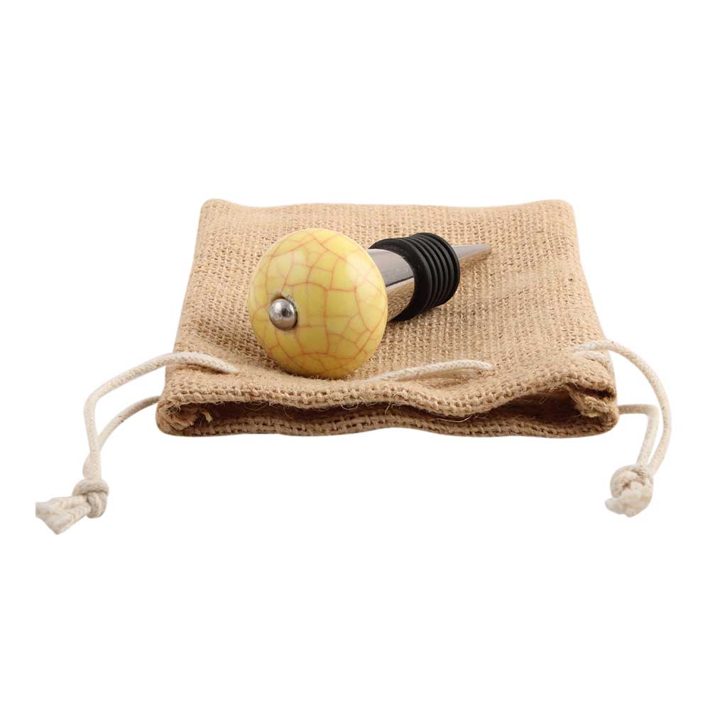 Yellow Pink Crackle Ceramic Wine Stopper.zinc alloy wine bottle stopper with attractive Jute Bag Packaging.