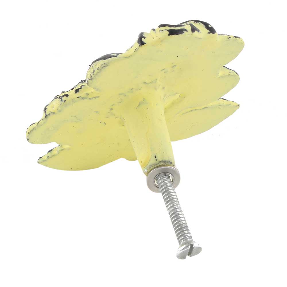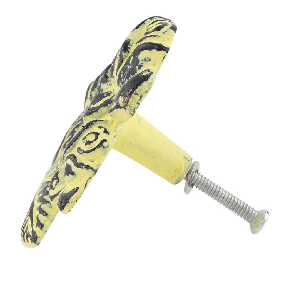 The Yellow Rose with Branch Distressed Iron Dresser Knob combines a beautiful yellow rose design with a vintage-inspired distressed finish. The detailed branch accents add a natural, whimsical touch, making this knob a perfect choice for those seeking elegance and character in their furniture hardware.