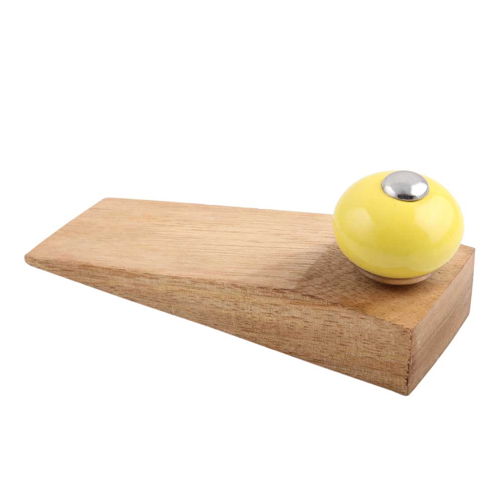 Yellow Round Ceramic Wooden Door Stopper