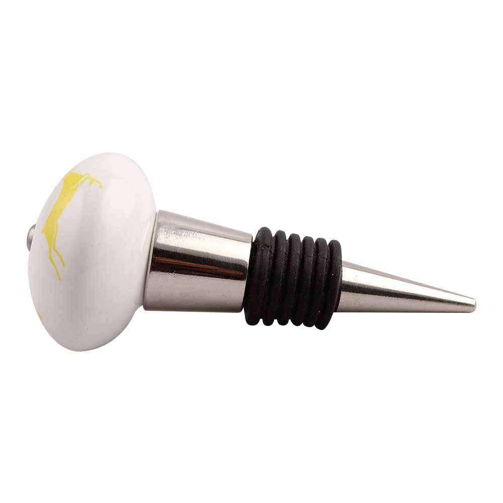 Yellow Runing Rein Deer Pattern Ceramic Wine Stopper.zinc alloy wine bottle stopper with attractive Jute Bag Packaging.