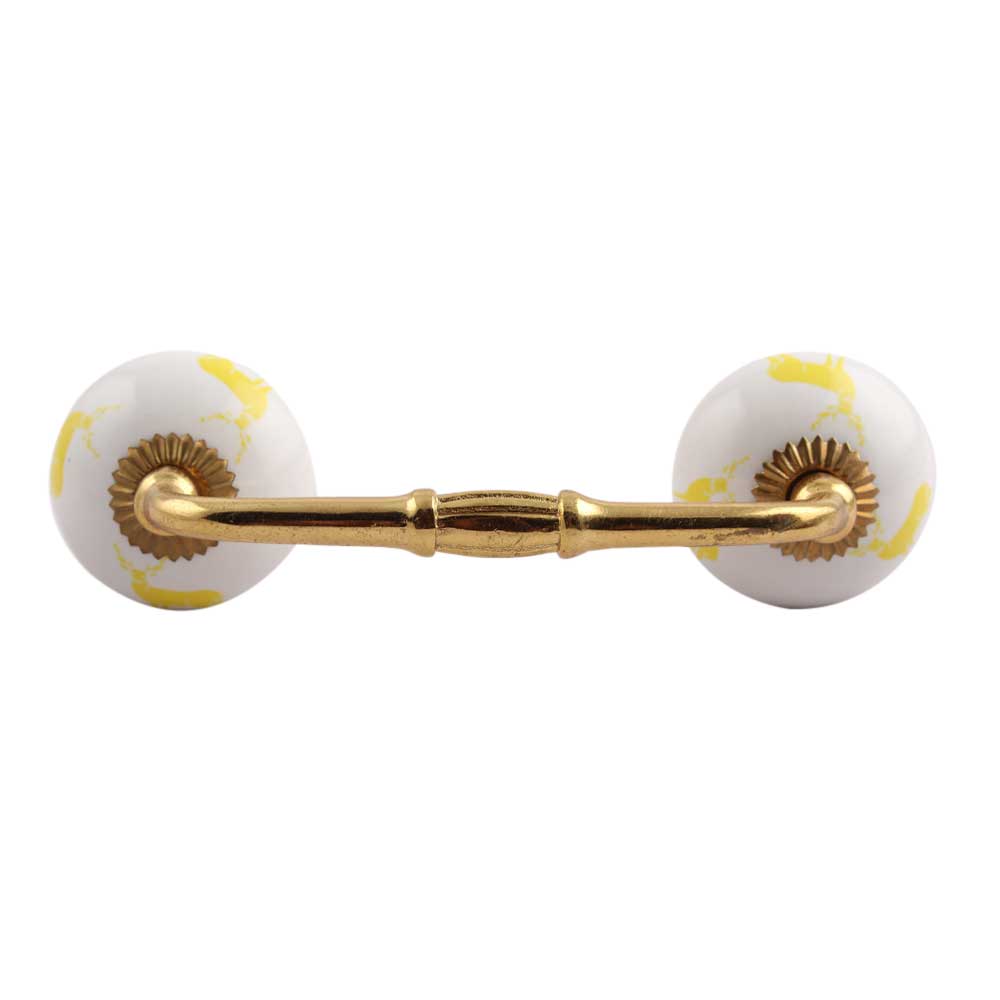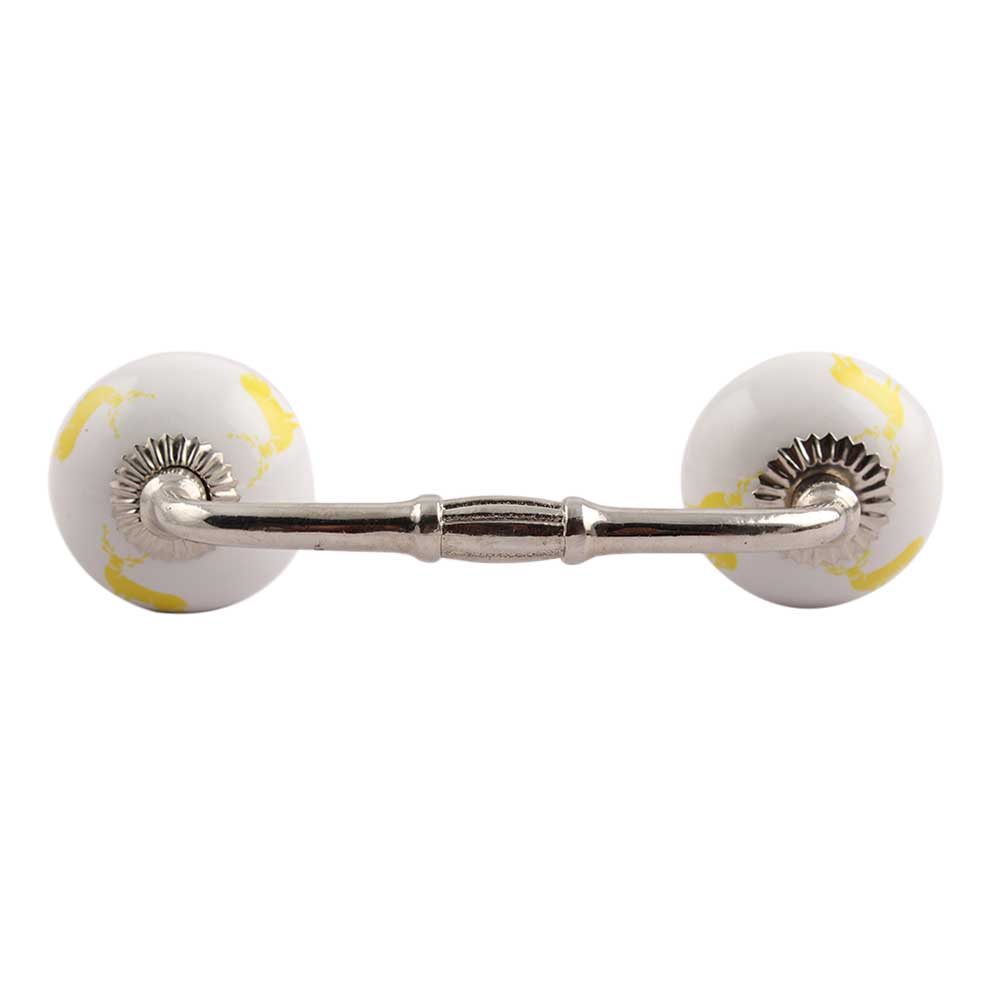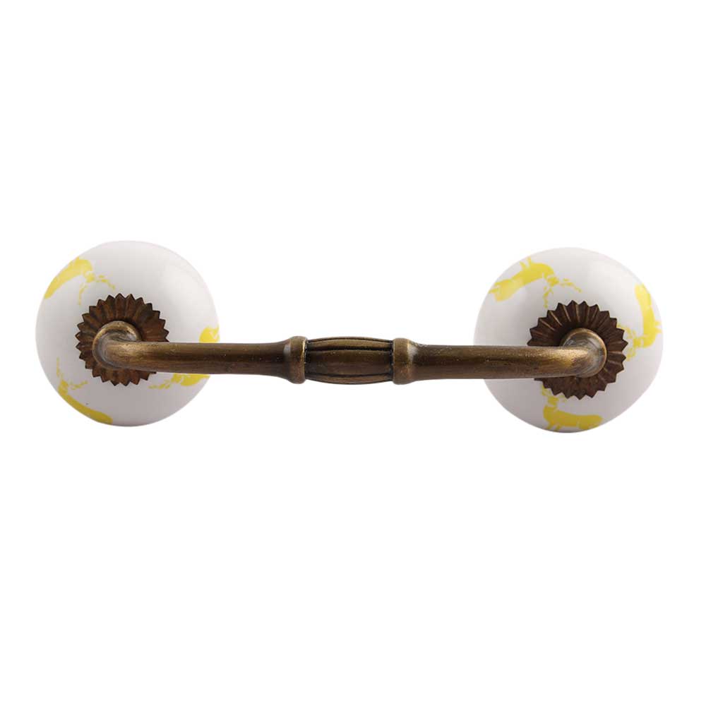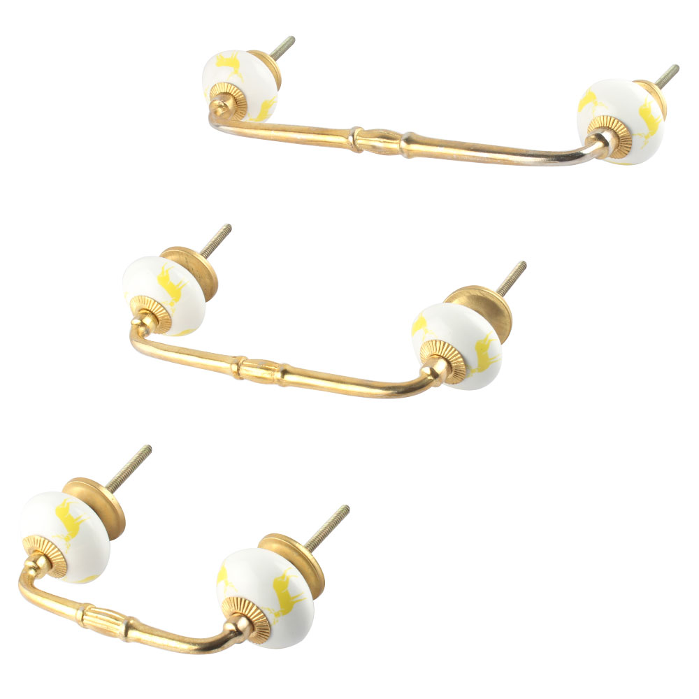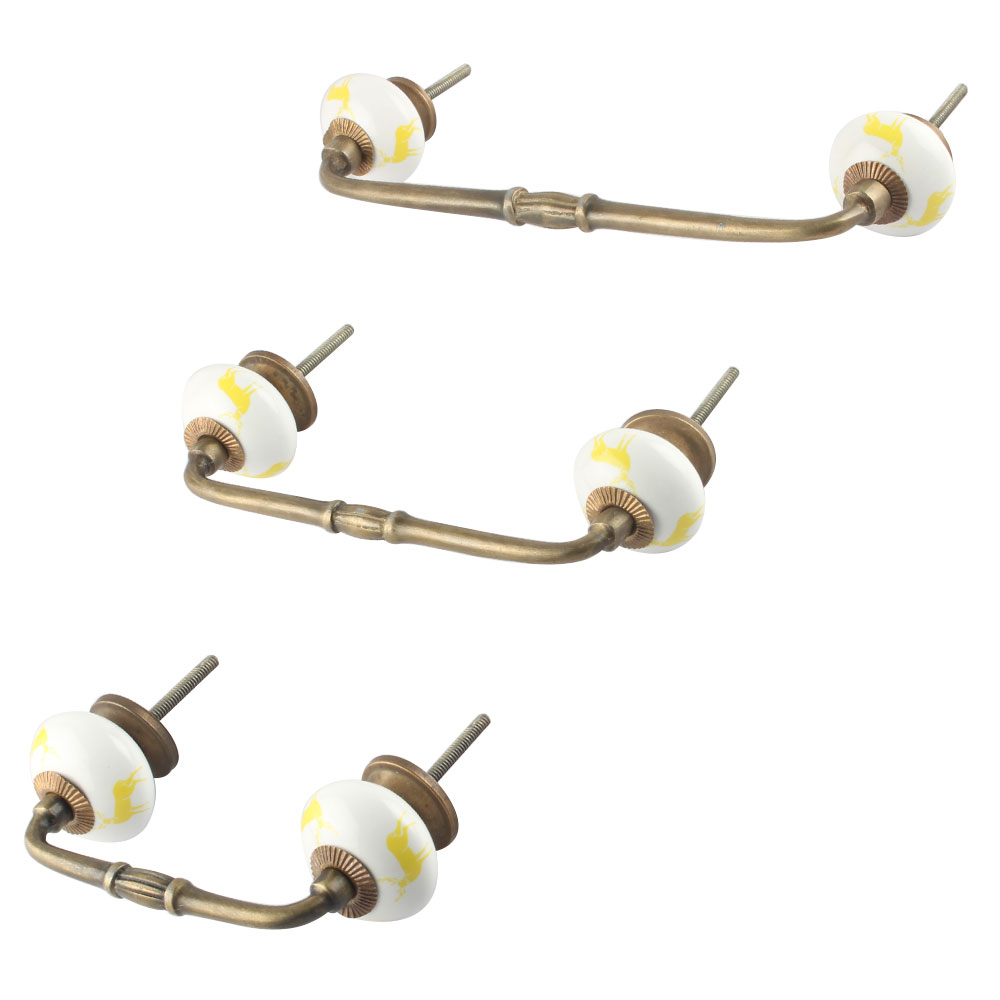 Yellow Standing Rein Deer Pattern Ceramic Bridge Handle. Ideal for Drawer, Dresser, Cabinet, Wardrobe, Cupboard and Almirah.