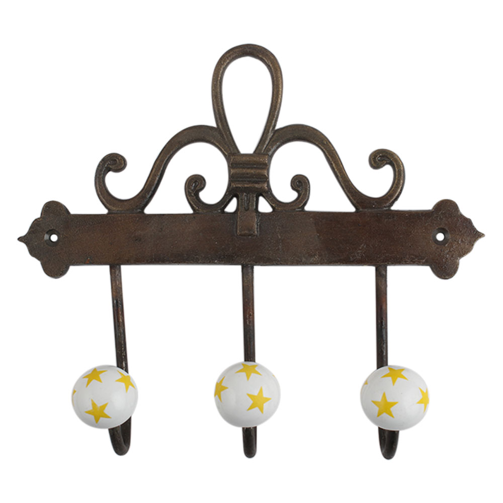 Yellow Star Ceramic Iron Hook. A Perfect Complement to the Soft Tone of the Wood are these White Traditional Hat &Amp; Coat Hook Made of Genuine Porcelain and Brass. It can be use to Hang Jewellery, Leashes, Towels, Scarves, Light Weight Sweaters, Caps Etc.