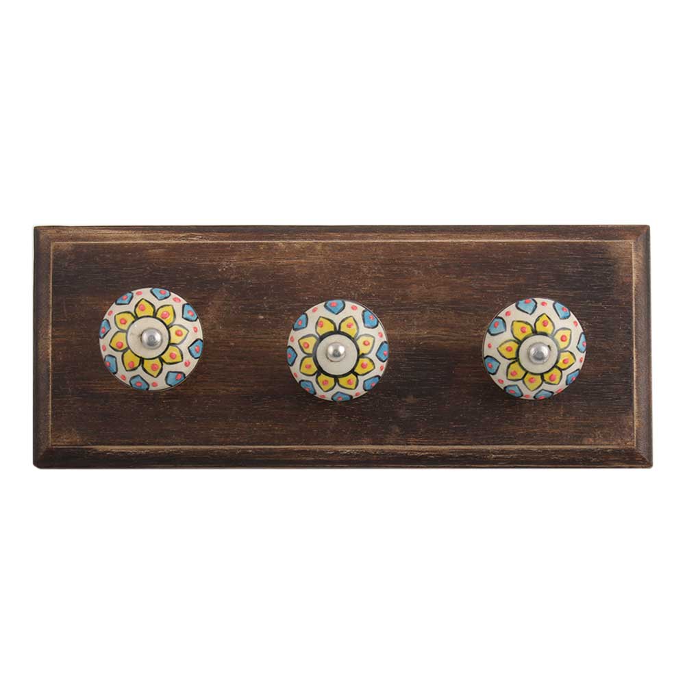 Yellow Sunflower Flower Ceramic Wooden Hook. A Perfect Complement to the Soft Tone of the Wood are these White Traditional Hat & Coat Hook Made of Genuine Porcelain and Brass. It can be use to Hang Jewellery, Leashes, Towels, Scarves, Light Weight Sweaters, Caps Etc.