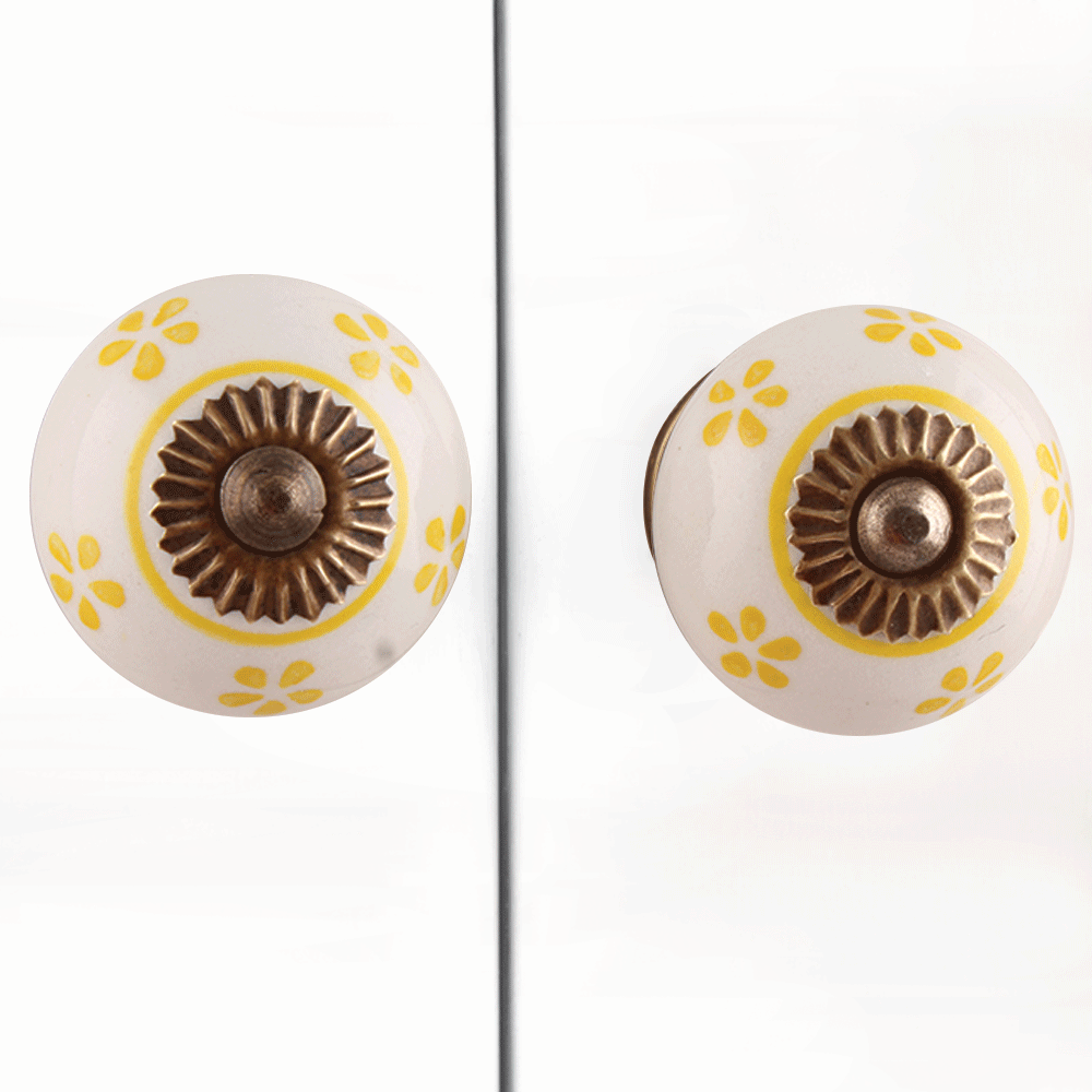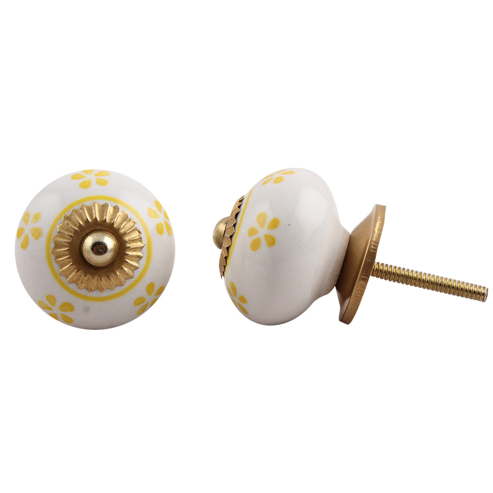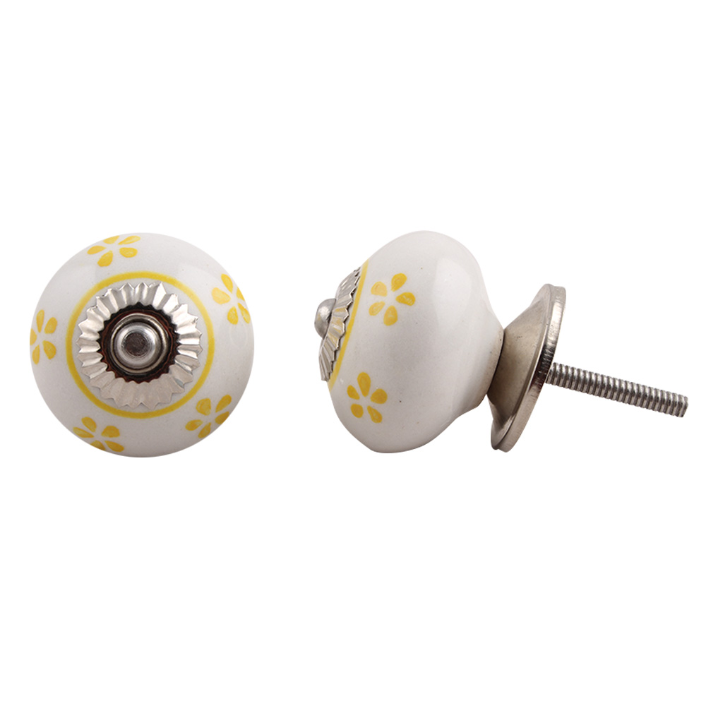 Yellow Tiny Flower Ceramic Dresser Knob, kitchen drawers, dining room, bed room, chest drawers, dressing tables, almirahs, etc.