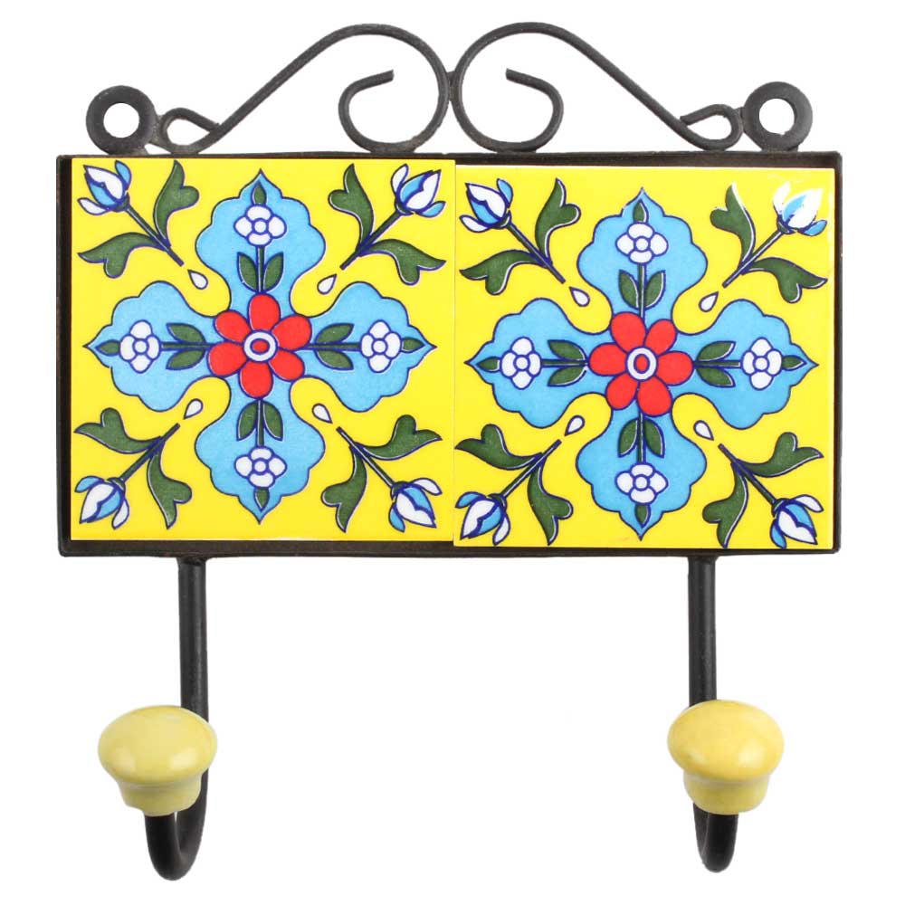 Yellow Turquoise Floral Tiles Hooks