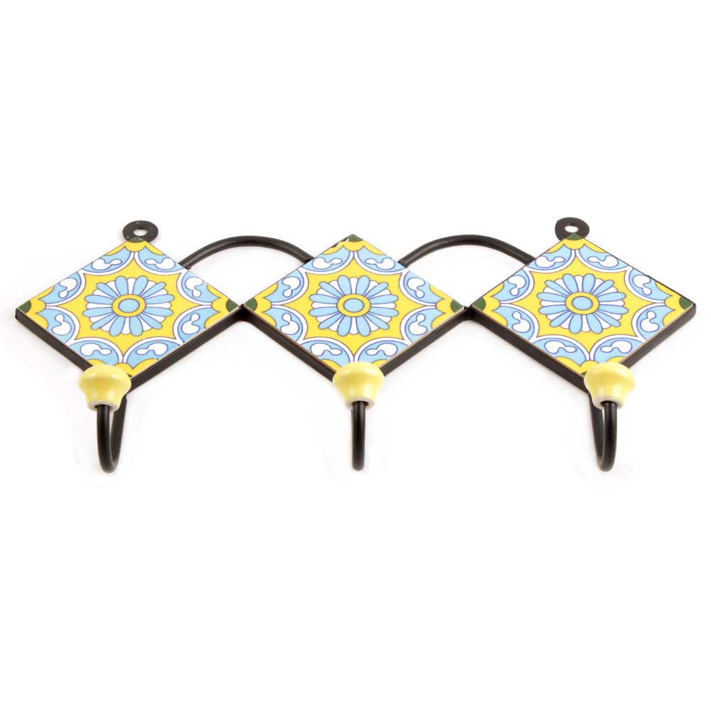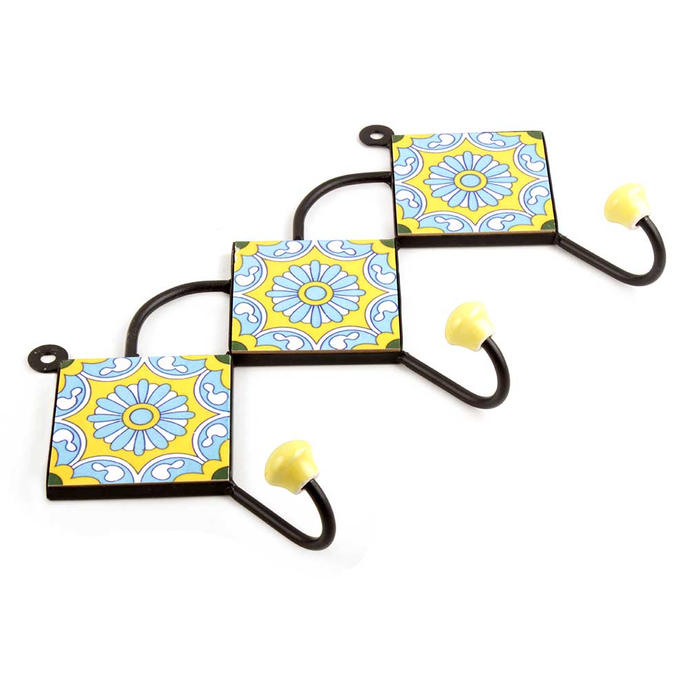 Yellow Turquoise Wheel Tiles Hook. When Put on Wall or Cabinet It is An Art in Itself. the Metal Part of This Hook is Black Powder Coated.
