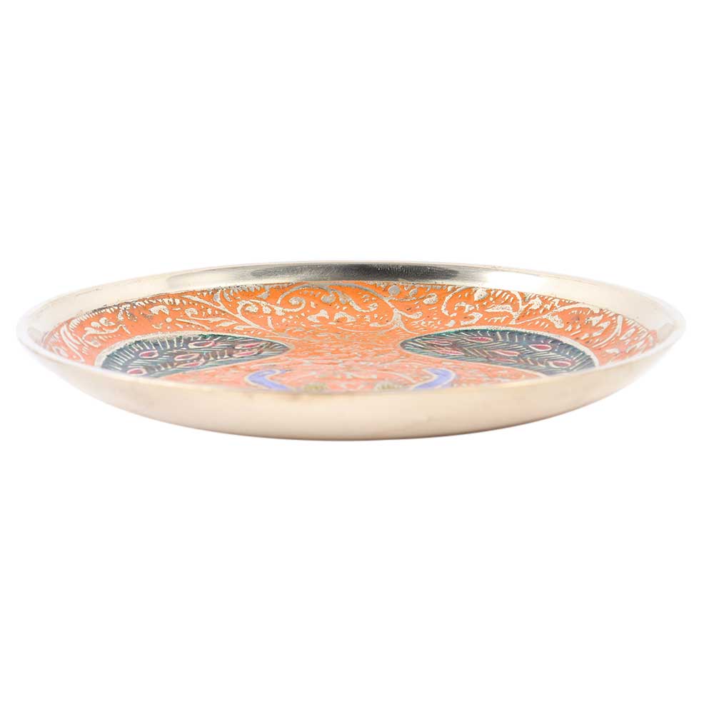 Brass Tea-Coffee drinks with a twin Peacock design coaster in a multicolor blend of green, red, and blue. Size standard Coaster with a lovely colour scheme. Useful in the kitchen home, office, dining room, and living room to offer tea coffee water drinks and other beverages to guests family. The best remembrance gift item for every occasion.